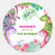 Cute Girl Dinosaur 4th Birthday Party Classic Round Sticker