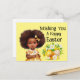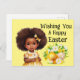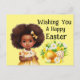 An Adorable Brown Girl Easter Greeting Postcard In Yellow With Daisy Flowers And Golden Eggs