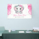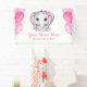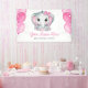 Customisable Watercolor Cute Baby Elephant with pink bow Banner/Backdrop Sign for Baby Shower, Birthday.