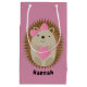 Personalise this cute girl hedgehog hugging a heart gift bag with a name or text of choice.