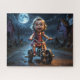 Cute Girl On Bicycle Horror Fantasy Jigsaw Puzzle