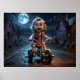 Cute Girl On Bicycle Horror Fantasy Poster