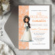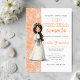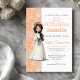 Adorable First Communion invitation with a cute girl and a soft peach background. A beautiful Catholic design perfect for your daughter’s First Holy Communion celebration.