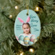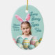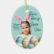 Cute Girl Photo Bunny Ears Blue Ceramic Ornament