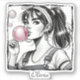 Cute Girl Pink Bubble ,Comic Fun,Black & White