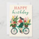 Cute Girl Riding Bicycle w Flowers Happy Birthday