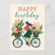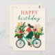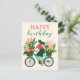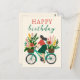 Cute Girl Riding Bicycle w Flowers Happy Birthday Postcard
