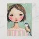 Cute Girl With a Bird on Her Shoulder Postcard