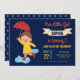 Amaze your guests with this cute rain theme birthday invitation featuring a cute girl holding an orange umbrella with vibrant typography against a dark blue background. Simply add your event details on this easy-to-use template to make it a one-of-a-kind invitation. Flip the card over to reveal a rain drops pattern on the back of the card.