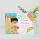 Start your bowling party off right with our cute bowling birthday party Invitation for a girl birthday party. Our cute bowling invitation features a cute african american girl with a bowling ally and bowling pins & bowling balls set on a rainbow colours pink, orange, lime green, purple, & turquoise blue polka dotted background with a birthday bunting banner and bright and colourful balloons ... super cute with a coordinating back. Just personalise with your information and you're all set to go! Matching items including birthday postage stamps, favour stickers, thank you cards & thank you stickers are also available in our shop. ©JW Illustrations