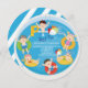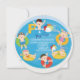 Unique Girls & Boys Pool Birthday Party Invitation featuring a round pool with girls & boys floating in a pool!