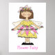 Charming country primitive artwork of a little girl in pink and yellow dress, with wings, and holding a garland of flowers. Pink text reads Flower Fairy and is customisable to read anything you want. Makes a great framed print for any little girl's room.