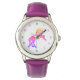 Your favourite girl is sure to smile when she sees this adorable unicorn watch with rainbow colours. The numbers on the watch alternate between bright pink and black in an easy to read font. The font and colour are customisable. So cute for a girl's birthday present or other special occasion.