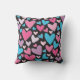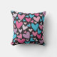 © Christina Katson- My original abstract vector art & design. This cute throw pillow has a colourful pattern with shades of pink, purple, and turquoise blue hearts against a black background. This decorative fun pillow will brighten up any home decor. Perfect for a bedroom, living room or any room that needs some bright cheery colours. This girly throw pillow would look especially cute in a girl's or teen's bedroom. It would be a GREAT gift for Valentine's Day or just buy for yourself! :-) Remember you can personalise it and add a name, monogram, photo or any text- just hit "customise". Visit my store to shop for more cute girly gifts: www.zazzle.com/abstractpaintings*/