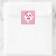 Imagine a charming little ghost, complete with a sweet pink bow and sparkling purple eyes, gently saying "Boo!" in a playful, friendly manner. It’s hard not to smile at such an endearing spirit!