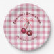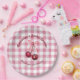 Cute Girly Bow Cherry Pink Gingham Plaid Name Paper Plate