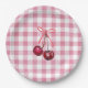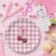 Cute Girly Bow Cherry Pink Gingham Plaid Paper Plate