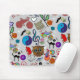 A beautiful girly pattern with some different graphic pictures. Flowers, cats owls musical notes, bicycles, ying-yang... multi-coloured compositon