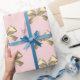 Cute Girly Gold Satin Aesthetic Bow Pink Wrapping Paper