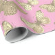 Cute Girly Golden Beige Butterfly Pattern Pink Wrapping Paper