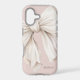 A cute feminine phone case with a large watercolor ivory white bow on a soft blush pink background and personalized with your name. The bow is angled to one side adding a touch of charm. Personalize the text template with your name or other desired text. If you wish to order the case without any name or text on it, simple choose personalize and then delete the sample name shown in the design template.