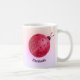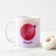 Personalised cute ladybug mug for girl with a beautiful watercolor illustration depicting a spherical abstract ladybug with lots of white dots in pink, purple and blue. This girly mug has customisable name.
