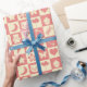 Cute Girly Modern Pink Chequered Icons Pattern Wrapping Paper
