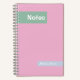 A cute pink notebook for girls with text that reads "NOTES" and a custom monogrammed full name.