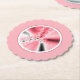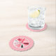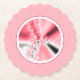 This cute coaster features an abstract fractal art in a pink gradient on a white round frame and a matching pink background.