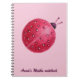 Personalised watercolor ladybug girl notebook with a beautiful illustration depicting a spherical abstract ladybug with lots of white dots in pink and purple. This girly notebook has customisable text.