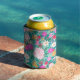 Cute girly pink & Mint hand paint floral design Can Cooler