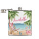 Cute Trendy Girly Tropical Beach Name Flask. A cute little flask for your bachelorette adventures or just for a fun event. A cool watercolor beach theme with shades of pink and teal, setting the vibe for a beach escape with the bride and her besties. From trips to Florida, California, or even something more international like Mexico, Hawaii or The Bahamas, this girls weekend is going to rock! Cute pink and white beach chair, umbrella, and even a flamingo floaty for some extra fun. Palm trees swaying, shells to collect—it's all about those chill tropical beach vibes. With modern fonts adding a stylish twist, it's the perfect look for your bachelorette weekend. Just you and your crew, making memories against a backdrop of sand and sea. Check out all of the coordinating pieces too!