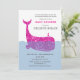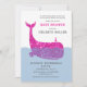 Cute and trendy invitation featuring a whale character with a dark pink glitter texture. The small hearts add a sweet touch perfect for the mum-to-be. The back of the card has a delicate heart pattern on a soft blue background. The pink and grey colour palette makes it perfect for a mum-to be expecting a baby girl.