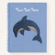 This spiral notebook has a cute glittery jumping dolphin who is dark blue with a white stomach. Customise your text on the front with the template.