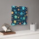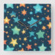Cute yellow, red and blue glowing stars on blue background pattern design.