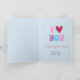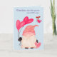 Here is a cute Valentine's Day card that is appropriate for grandparents to give a young grandson or granddaughter. The front features an adorable little white bearded gnome dressed in a pink and white striped hat. He holds a string full of heart shaped balloons, and a little pink bird does the same. The text says "Grandson, just here to say..." The inside completes the message, with two more text fields that you may customise. Cute, colourful, and can be easily personalised for your child, son, or daughter!