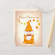 Cute gnome holding a pie and colourful fall leaves Thanksgiving greetings Postcard. All text can be personalised.