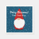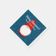 Cute red gnome cartoon Christmas Holiday party Napkins. Funny disposable paper napkins with personalised text. Customisable background colour. Trendy x-mas decorations and party supplies. Add your own name, monogram, seasons greetings or funny quote. Fun for home or office. Troll with red hat and big white beard plus snowflakes.