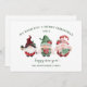 Send your holiday greetings this year with these cute Christmas gnomes holding a lantern, gift, and tree.