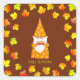 Cute Gnome & Colourful Fall Leaves on Brown Square Sticker