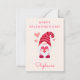 Cute classroom Valentine's Day card featuring an illustration of a cute gnome holding a heart. Personalise the front of the Valentine's Day card by adding a custom greeting and your name. The card reverses to display a pink heart pattern.