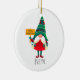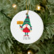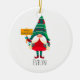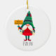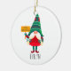 Cute Gnome Holding Placard with Greetings Ceramic Ornament