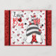 For Valentines Day this year, anyone would love to receive this cute love bug postcard featuring an adorable gnome illustration with a ladybug and red glitter background!