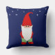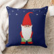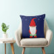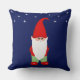 Cute Gnome Dressed in Green and Red on Navy Blue Pillow.