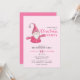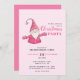 Create unique pink Christmas Party invitations decorated with a cute gnome. The template text makes it easy to personalise and customise the invites.