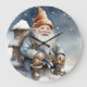 Cute Gnome Sitting by a Tree in the Snow Large Clock