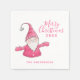 Create cute white and pink Christmas napkins that are personalised with your Family name, year or other text. These Xmas party napkins feature the Merry Christmas saying and a cheerful gnome. Text is in pink colours on this design.