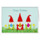 Cute Gnomes Holding Easter Eggs Holidays Card. Text can be personalised for Birthdays and more.