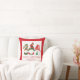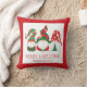 Cute personalised holiday red and green reversible throw pillow featuring three funny Scandinavian-style gnomes with a seasonal red and green hats. You can easily personalise the "Merry Christmas" greeting and your name at the bottom or leave blank.