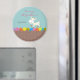 Instead of the traditional baby shower sticker, why not consider a magnet version. With this, your family and friends can put it on their fridge as a reminder of your darling's baby shower. This design features a cute baby goat running atop a bed of flowers. Sweet as can be! Use our easy-to-use template to personalise it.